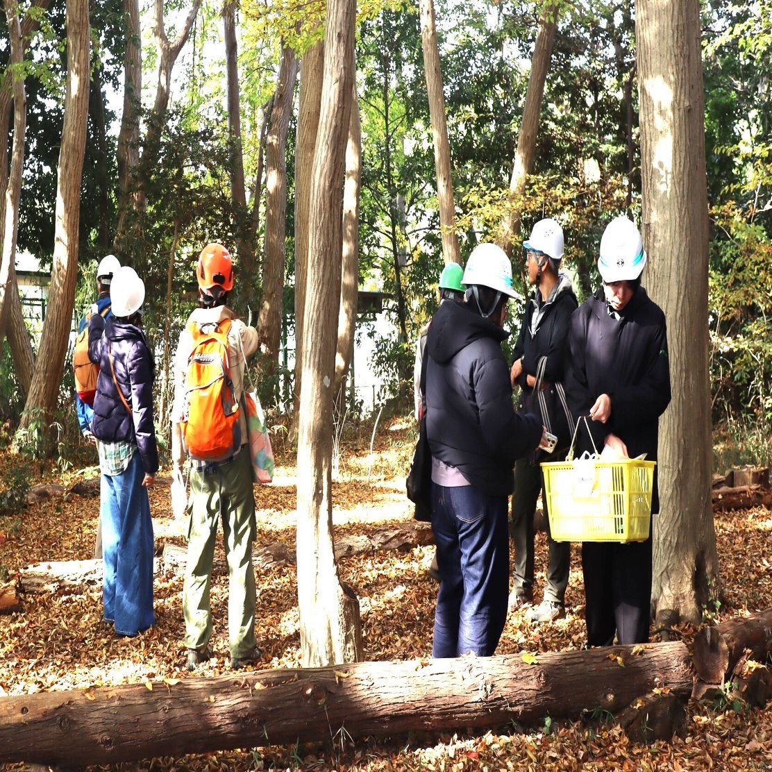 次の「野うさぎの森」は松戸市立松戸高等学校野球場脇にある「石みや農園」の隣にあり、「紙敷みなみの森」の続きとして一体となった森になっています。ここでは、担当者説明の後に作業体験の場として設定されていました。