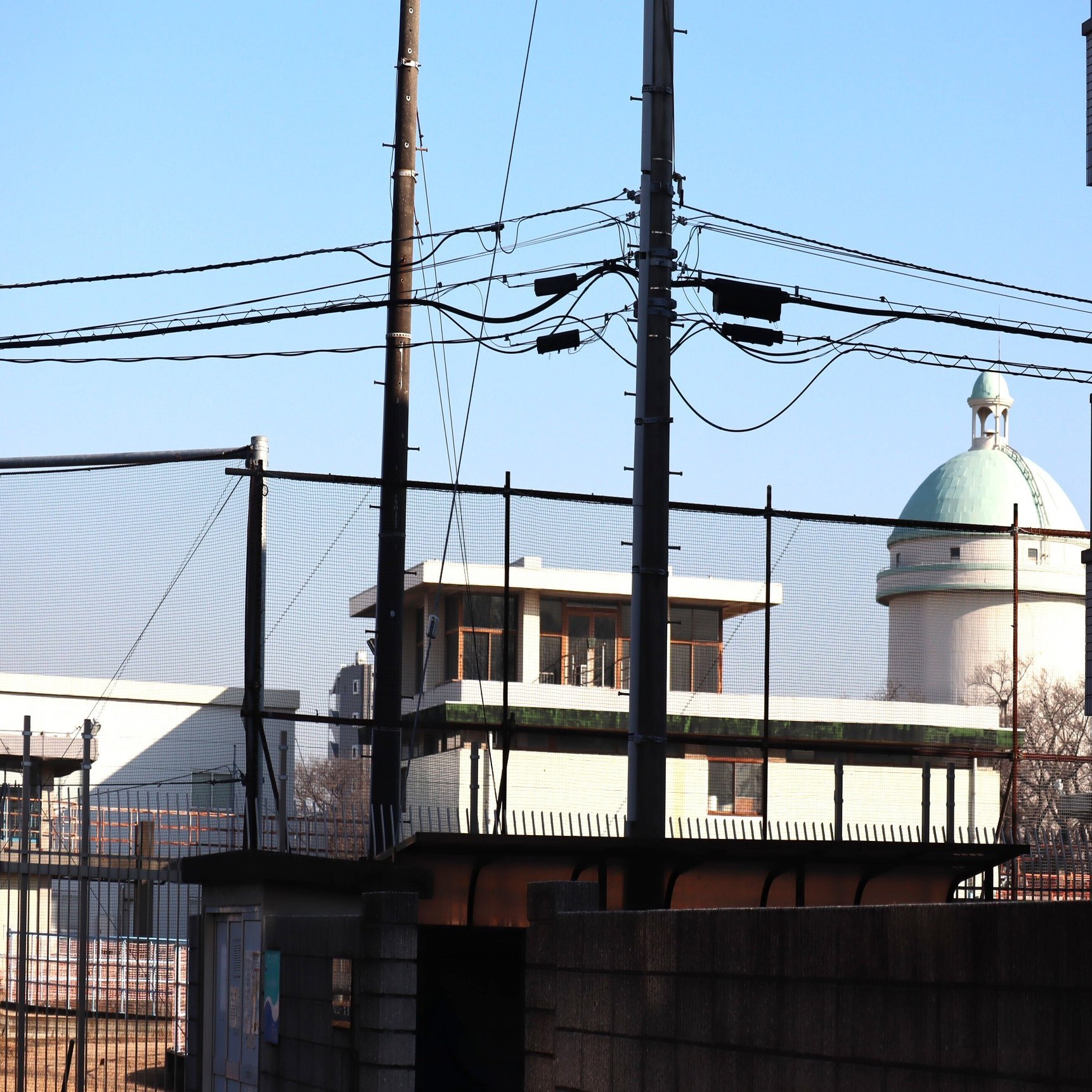 都心と通じる北総線の江戸川駅から鉄橋を渡る車窓からの眺めは、ランドマークだった旧伊勢丹デパートの展望室や外環道、斜面林、台地上の建物、線路下低地の畑などが目に入ります。