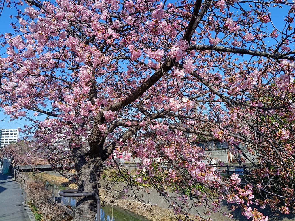 松戸駅西口から徒歩約5分の坂川沿いでは、例年2月下旬から3月上旬にかけて美しい河津桜が咲き誇ります。